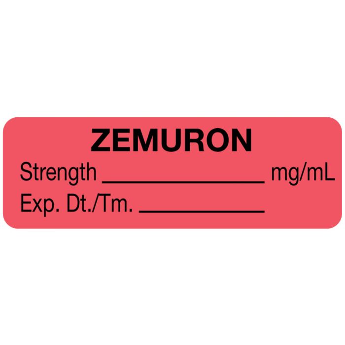 Anesthesia Label, Zemuron mg/mL, 1-1/2" x 1/2"